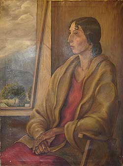An oil portrait of a woman, probably painted in Santa Fe or Taos, New Mexico.